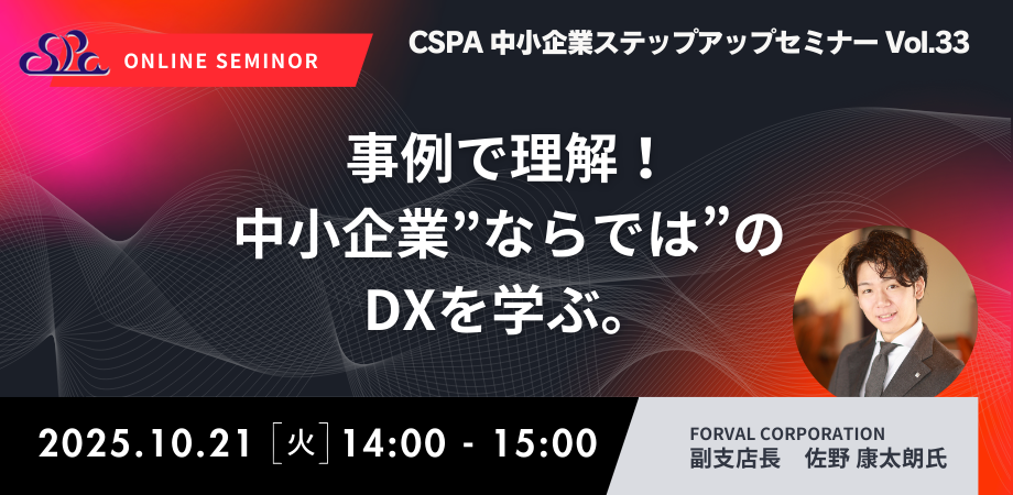 事例で理解!中小企業”ならでは”のDXを学ぶ。:CSPA 中小企業ステップアップセミナー#33