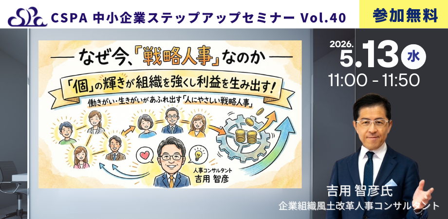 なぜ今、「戦略人事」なのか 「個」の輝きが組織を強くし利益を生み出す! 働きがい・生きがいがあふれ出す「人にやさしい戦略人事」:CSPA 中小企業ステップアップセミナー#40
